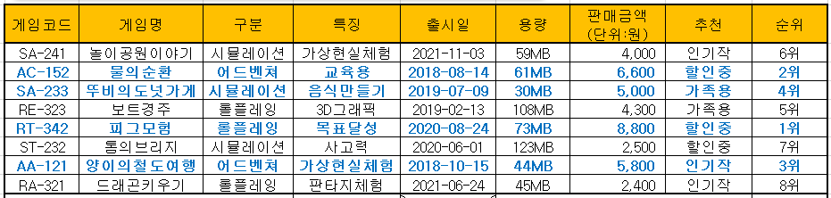 [게임명]을 이용해 [출시일]을 가져올 수는 있지만..