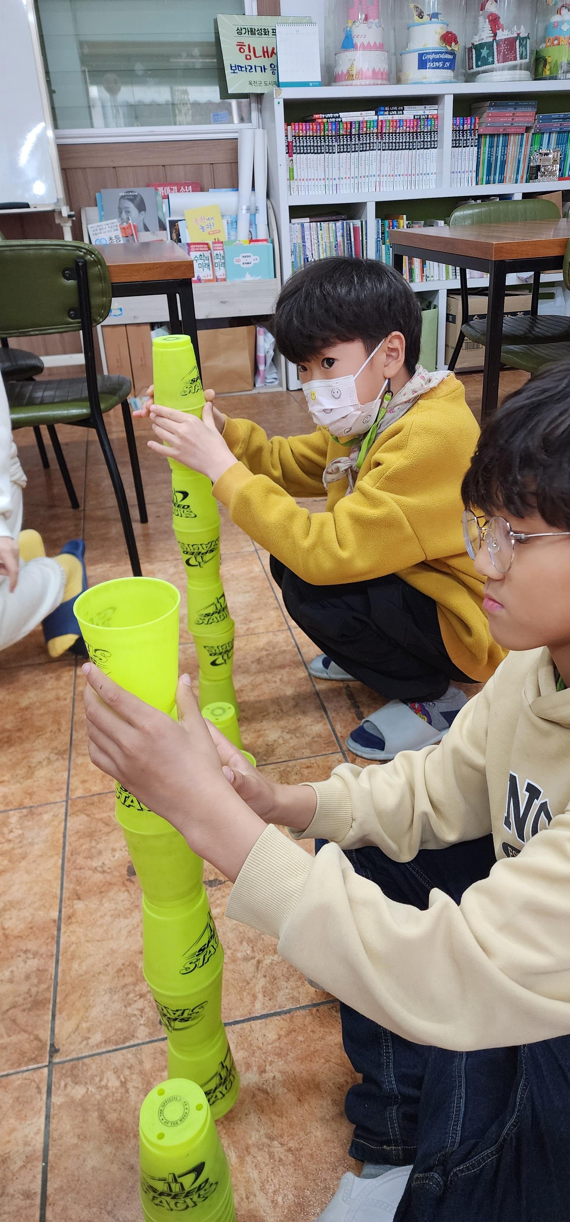 여기 저기서 스포츠 스태킹 하는 모습을 많이 보기도 했고