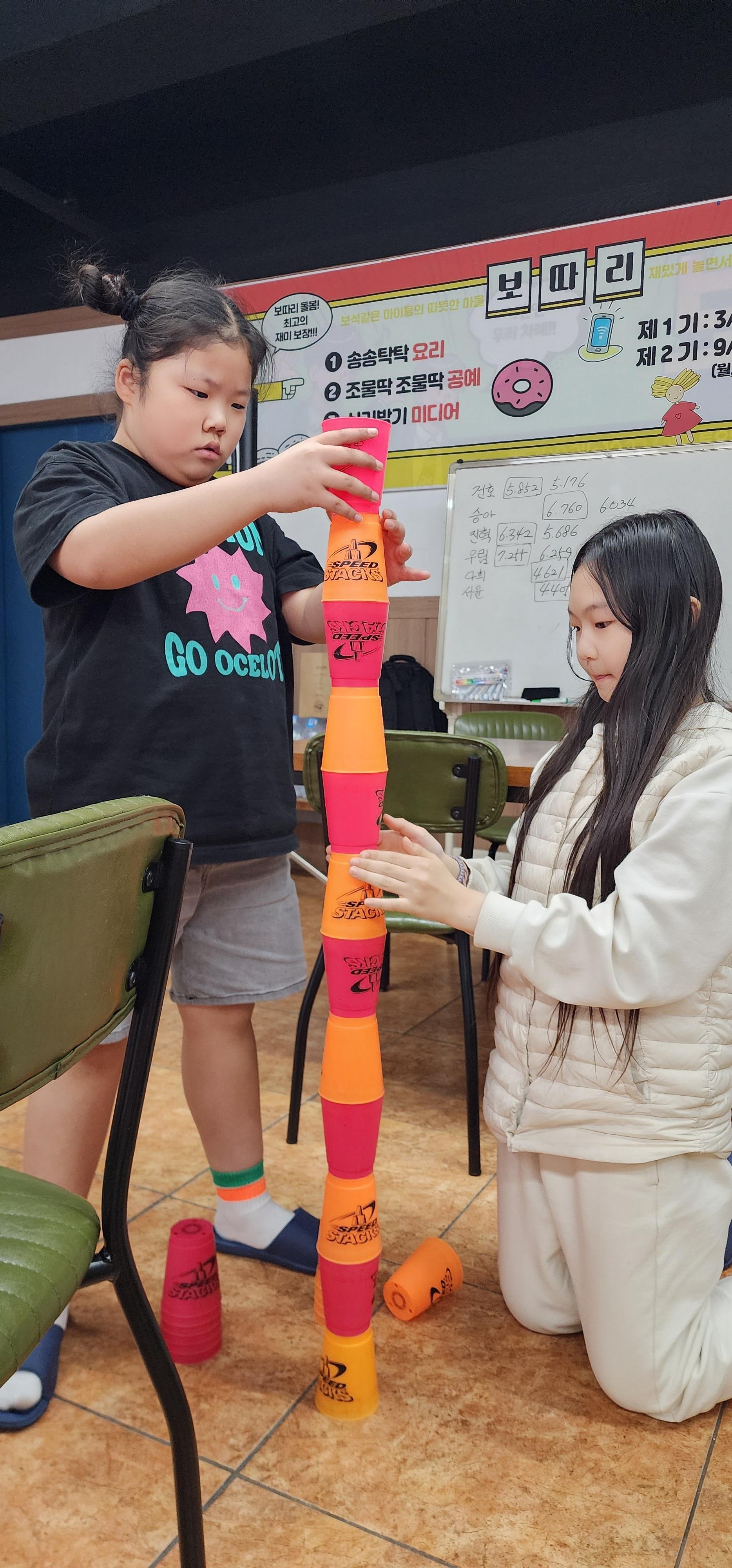 컵쌓기 놀이를 했어요.
