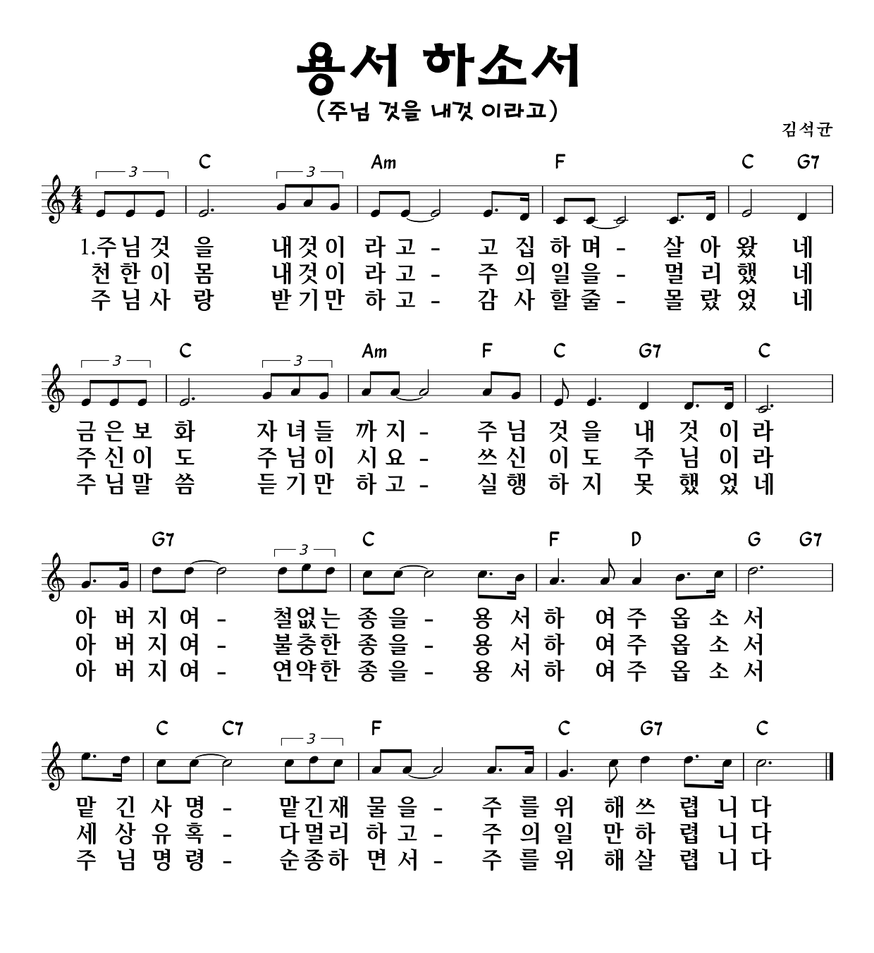 아버지여 철없는 종을 용서하여 주옵소서