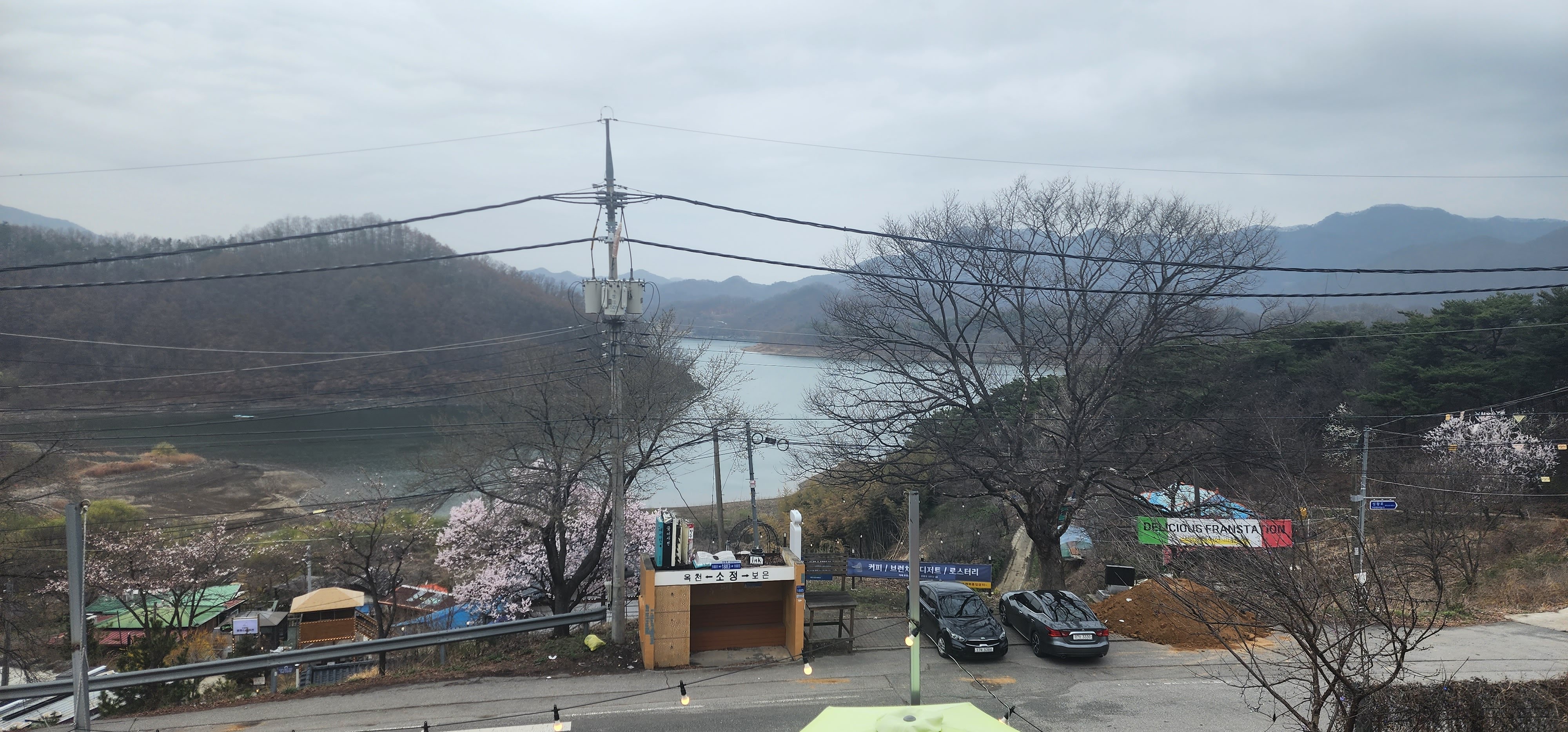 옥천 군북면의 소정리에서 우뚝 자리잡은 바람결 카페에서